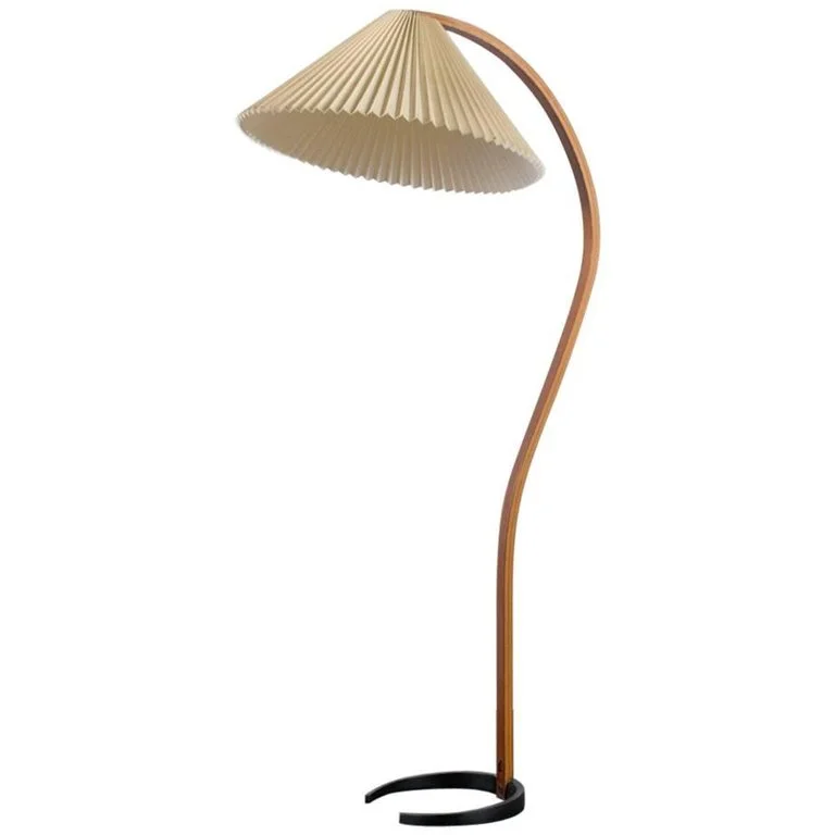 Mads Caprani lamp a 70s-era Danish creation that mixes a curved bentwood spine with a cast-iron base and a creamy fluted shade plays on the current mania for pleated lampshades. Original floor switch and wiring in very good working condition. Chandeliers Pendants Wall Lights Sconces Table Lamps Floor Lamps.