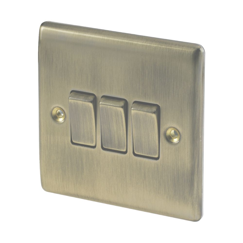 British General Nexus Metal 10ax 3 Gang 2 Way Light Switch Antique Brass Switches Screwfix Com