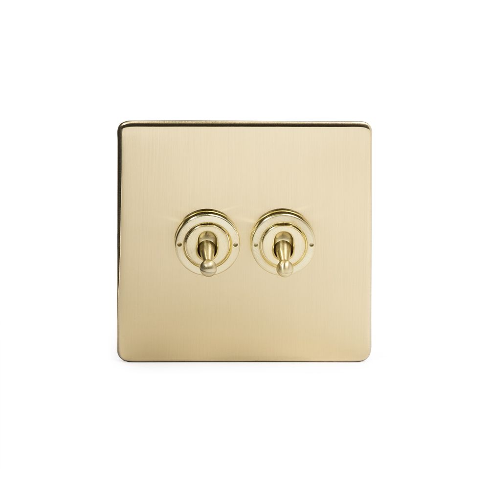 24k Brushed Brass 2 Gang 2 Way Toggle Switch With Black Insert The Soho Lighting Company Soho Lighting